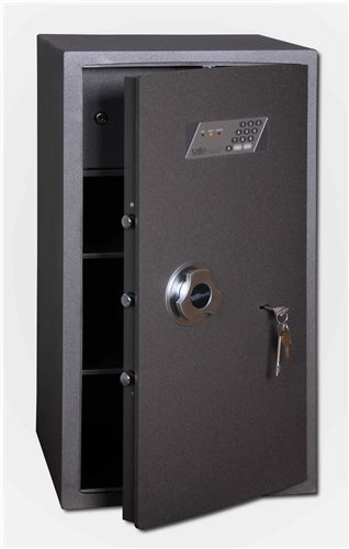 Praktický trezor řady NTR s mechanickým zámkem ovládaným klíčem (zámek MAUER) a elektronickým zámkem (Safetronics), vnitřní schránka je uzamykatelná klíčem (Eurolock). Je velmi praktický, může být dobře ukryt např. ve vestavěné skříně, aby nebyl tak zbytečně na očích. Vhodný k uložení cenností, hotovosti, dokladů a listin formátu A4. Kvalitní a praktický trezor za nejlepší cenu s certifikátem úrovně mechanického zabezpečení uschovaných předmětů důležitým pro případy eventuálního jednání s pojišťovnou či třeba v případě úschovy zbraní a střeliva.Vzhledem k velikosti a hmotnosti je samozřejmě velmi důležité náležitě sejf ukotvit k pevnému materiálu. Z výroby připraven na kotvení ke zdi (2 otvory) + k podlaze (2 otvory). Základním barevným provedením je granit.Uvnitř trezoru jsou dvě vyjímatelné police a součástí výrobku jsou 2 ks klíčů.